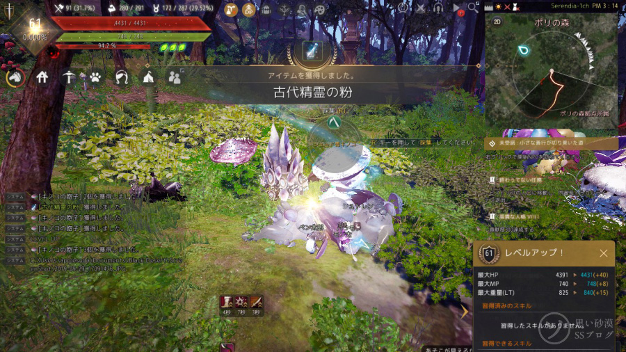 キノコ狩りがサクサク倒せて経験値もよく入ったので
