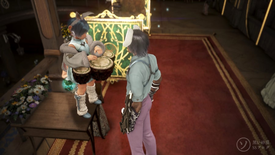 雪だるまとしっとり髪 パトリジオのイベント商店で変化の結晶を買い雪だるま遁甲書に交換しました。 これだけ持ってなかった なんで黒ばっかり・・・とかぶつくさ言ってたのに 試着してみるととても良かったのでヘルムを買いました。 こうやって並べて見ると顔同じだとわかるけど単体だと違う人に見えました。 かわいいです。 (○ ´ エ ` ○) お姫様ヘルム 印章が貯まったので欲しいカツラが入ってる衣装箱と交換しました。 お姫様みたいな髪型。服は装飾がすごく細かい。 (´-`) いまのうち 実は シャイのうさぎコスが可愛かったのでアーチャーにもうさ耳を買っていました。 これでお揃で撮る! シャイが肩を揉んでるようなポーズになったのでパシャリ☆ミ 楽器が出ない不具合がこんなところで役に立ちました。 不具合ある今がチャンス 太鼓叩く動作で頭ナデナデっぽいの撮れるかも?! あ・・・ 太鼓はダメなんだ 不具合ないと困るって何