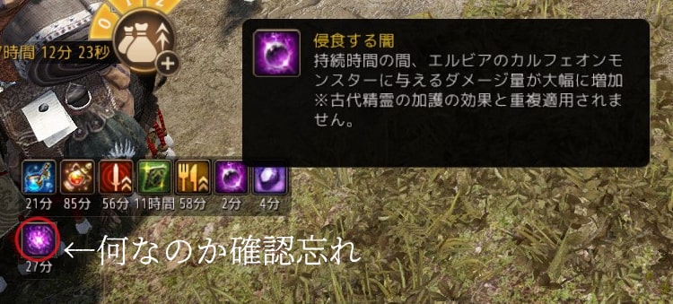 オーガを倒すと敵を倒しやすくなるバフが5分くらい付きました。